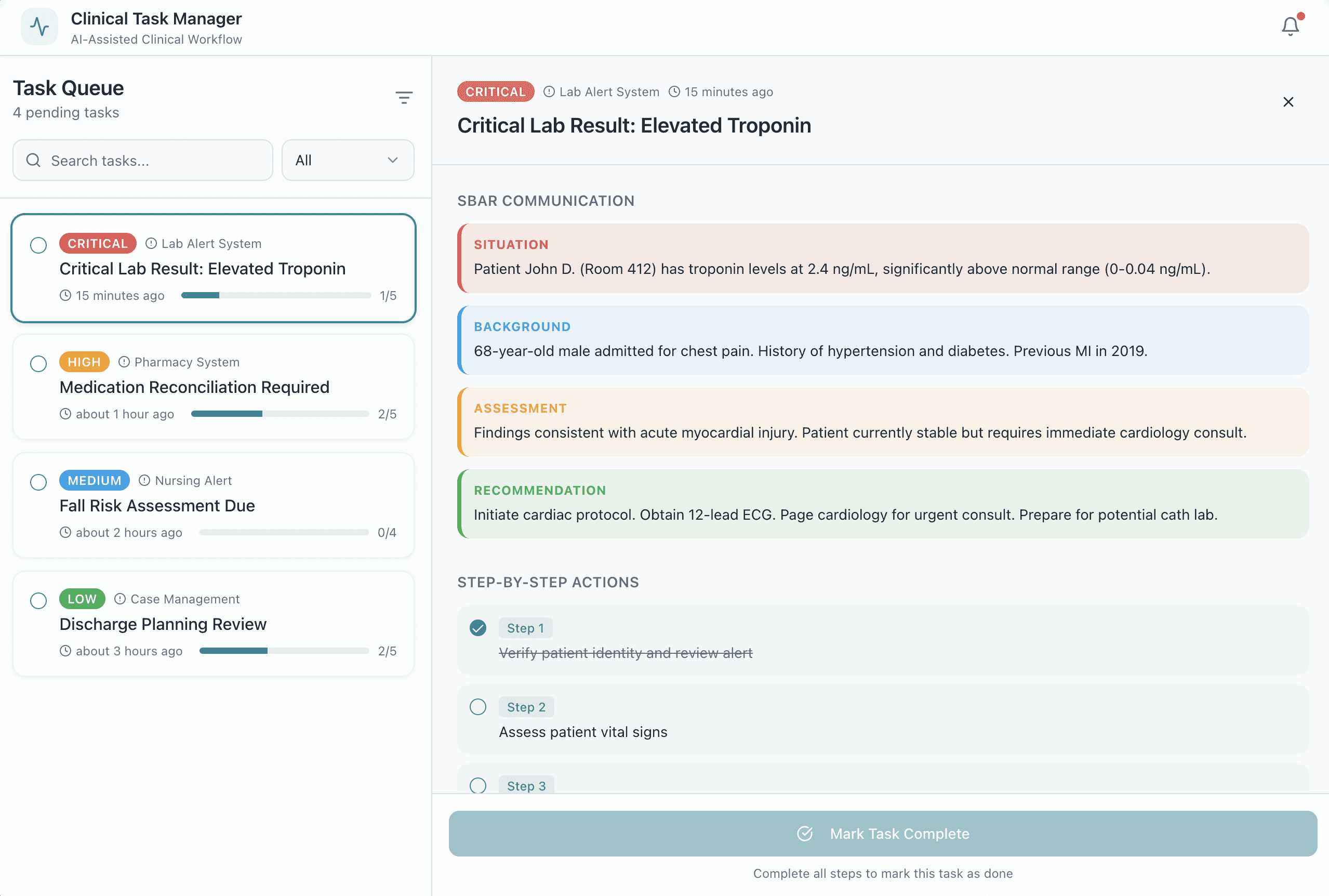 Tasks provide relevant information such as urgency, members required, etc. which previously needed to be communicated manually.