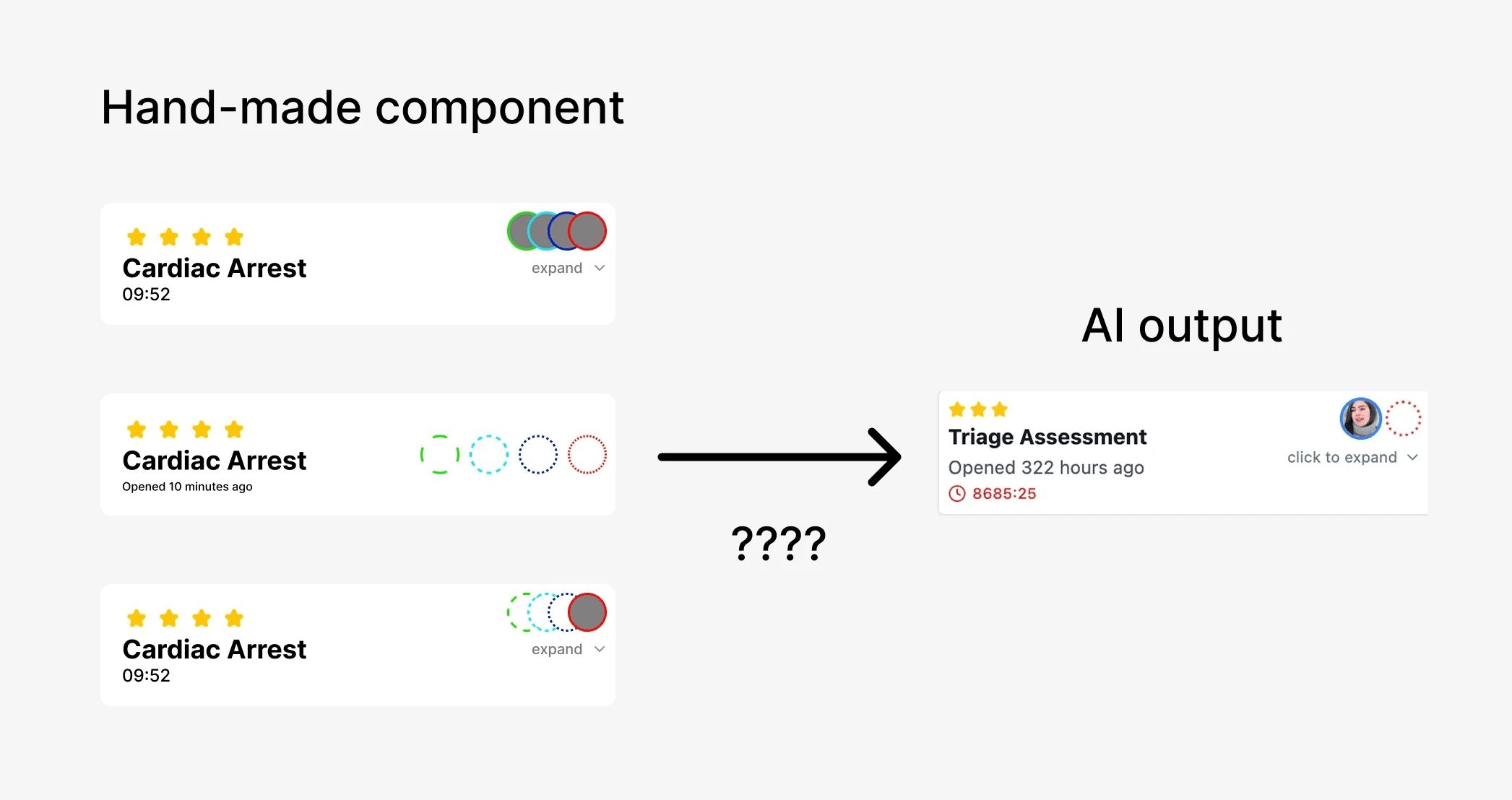 I learnt pretty quickly that AI can create really high fidelity interactions, but cannot replicate my designs if I give them as inputs. It could get the general idea, but not the final product.