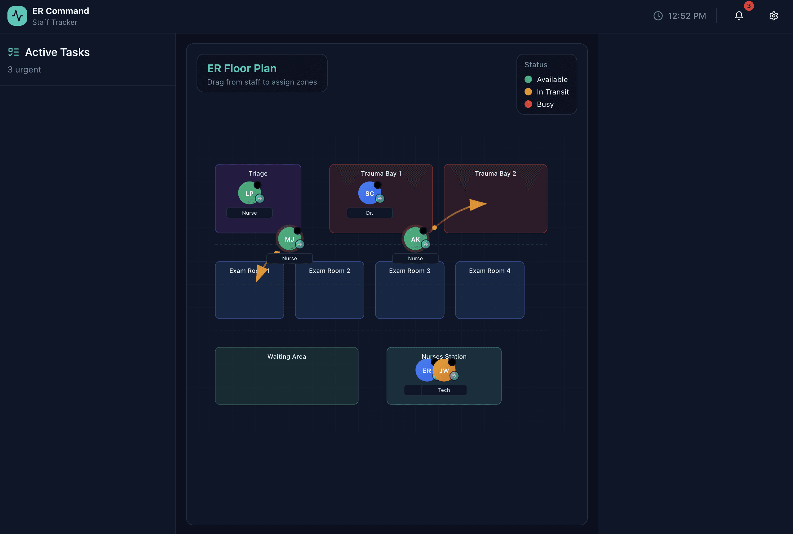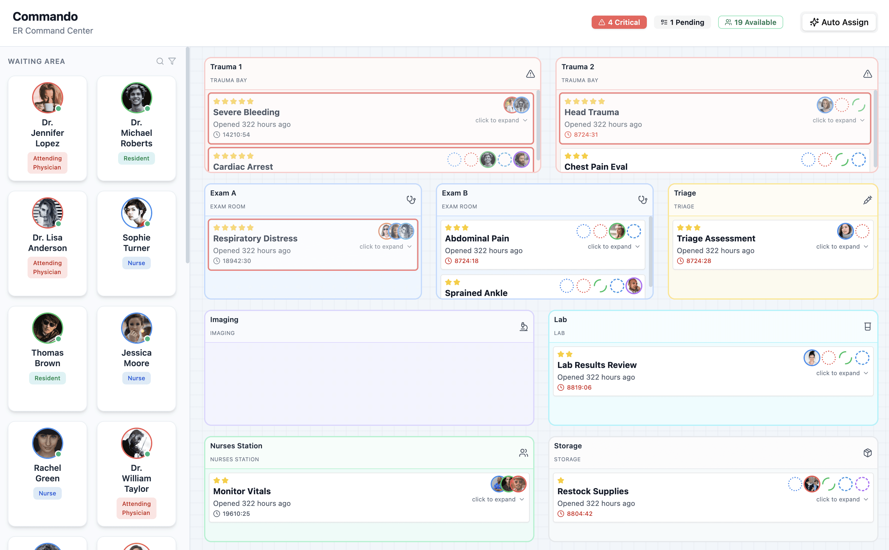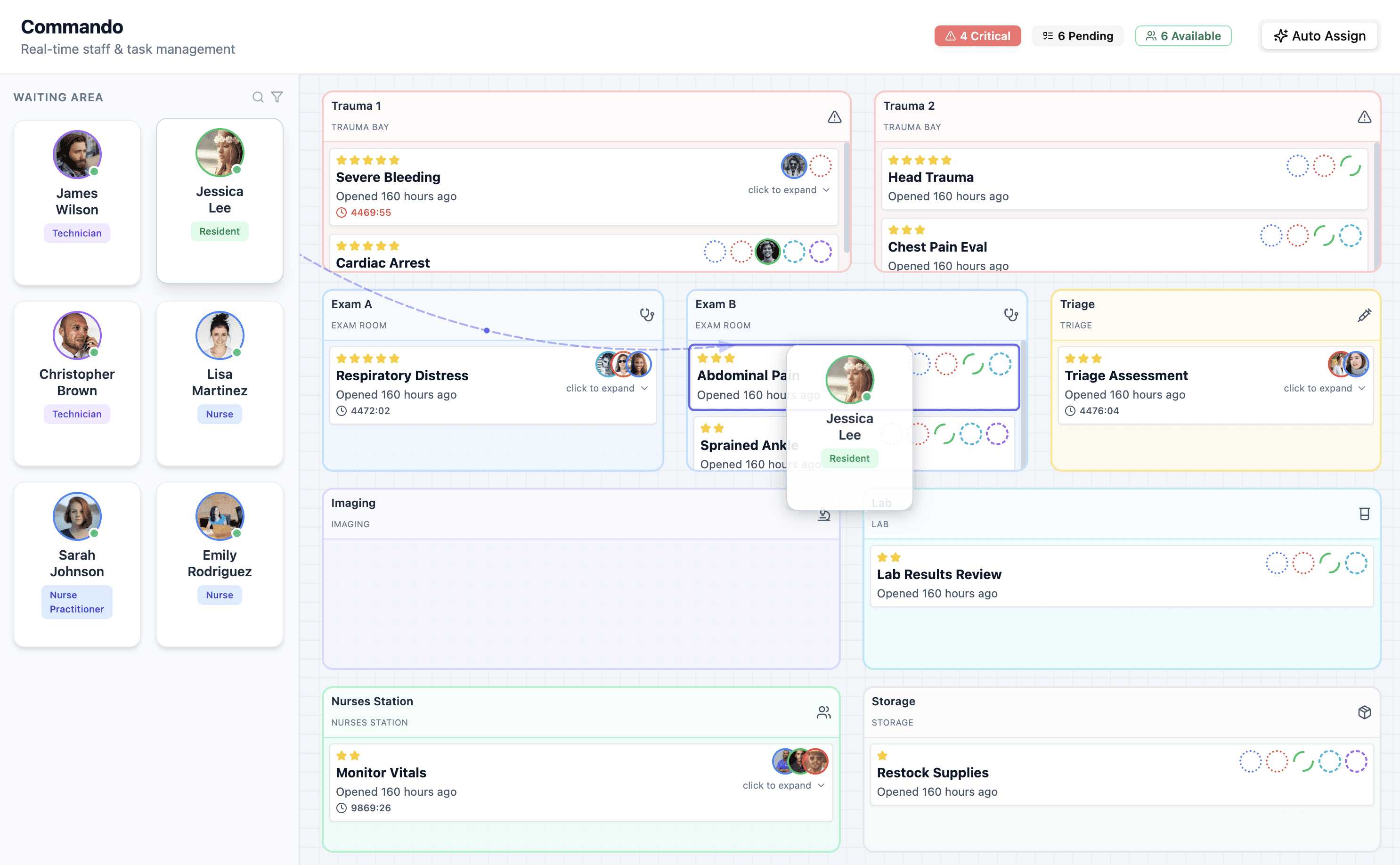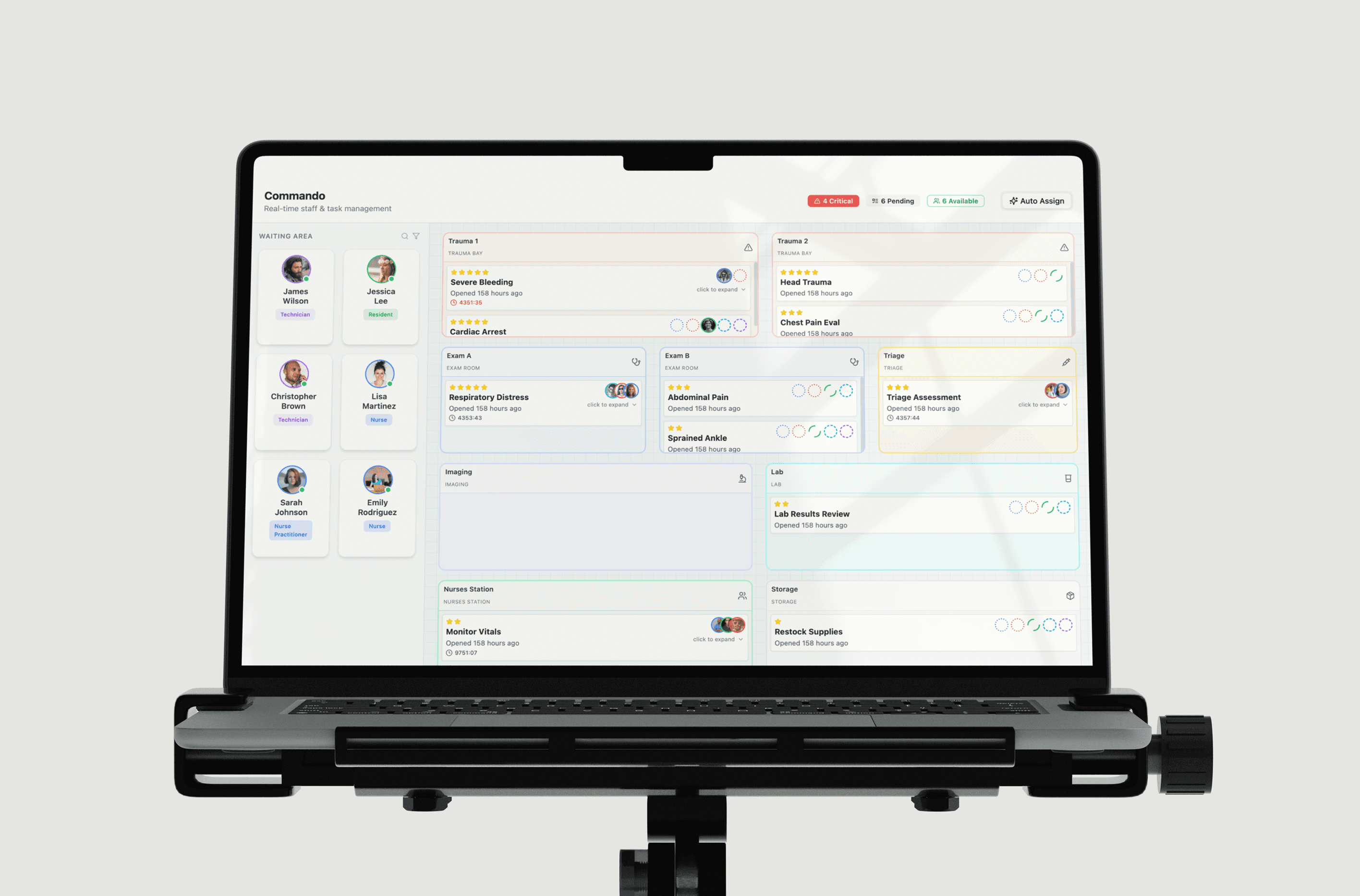 Emergency medical staff must maintain high cognitive readiness to manage rapid-fire, high-stakes decisions. To mitigate the risks of decision fatigue and mismanagement, Commando centralizes real-time data into a single hub. This streamlines communication and ensures team-wide clarity without overextending personnel.