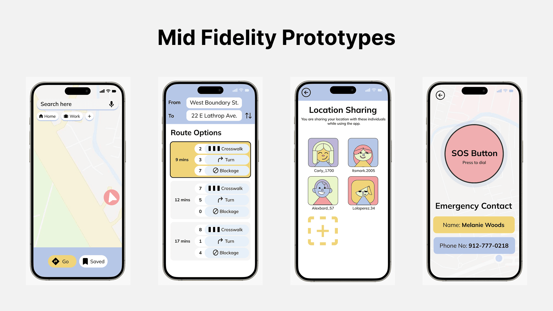 I spearheaded the creation of mid fidelity prototypes that incorporated the Navigaid branding.