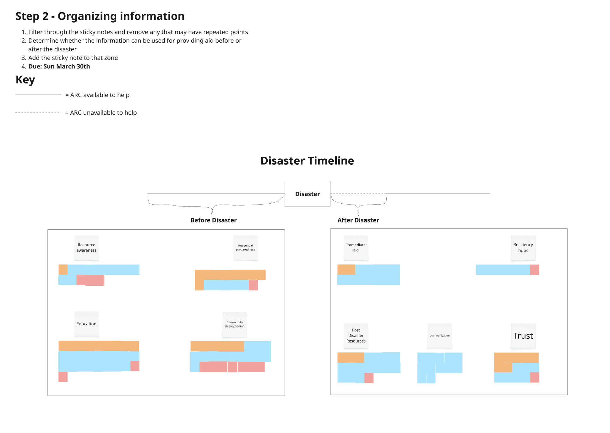 Next, we further segregated the data points with context to where that information can be useful (before and after a disaster occurs). Then, we further divided these data points on common themes and patterns we observed by analyzing the data.
