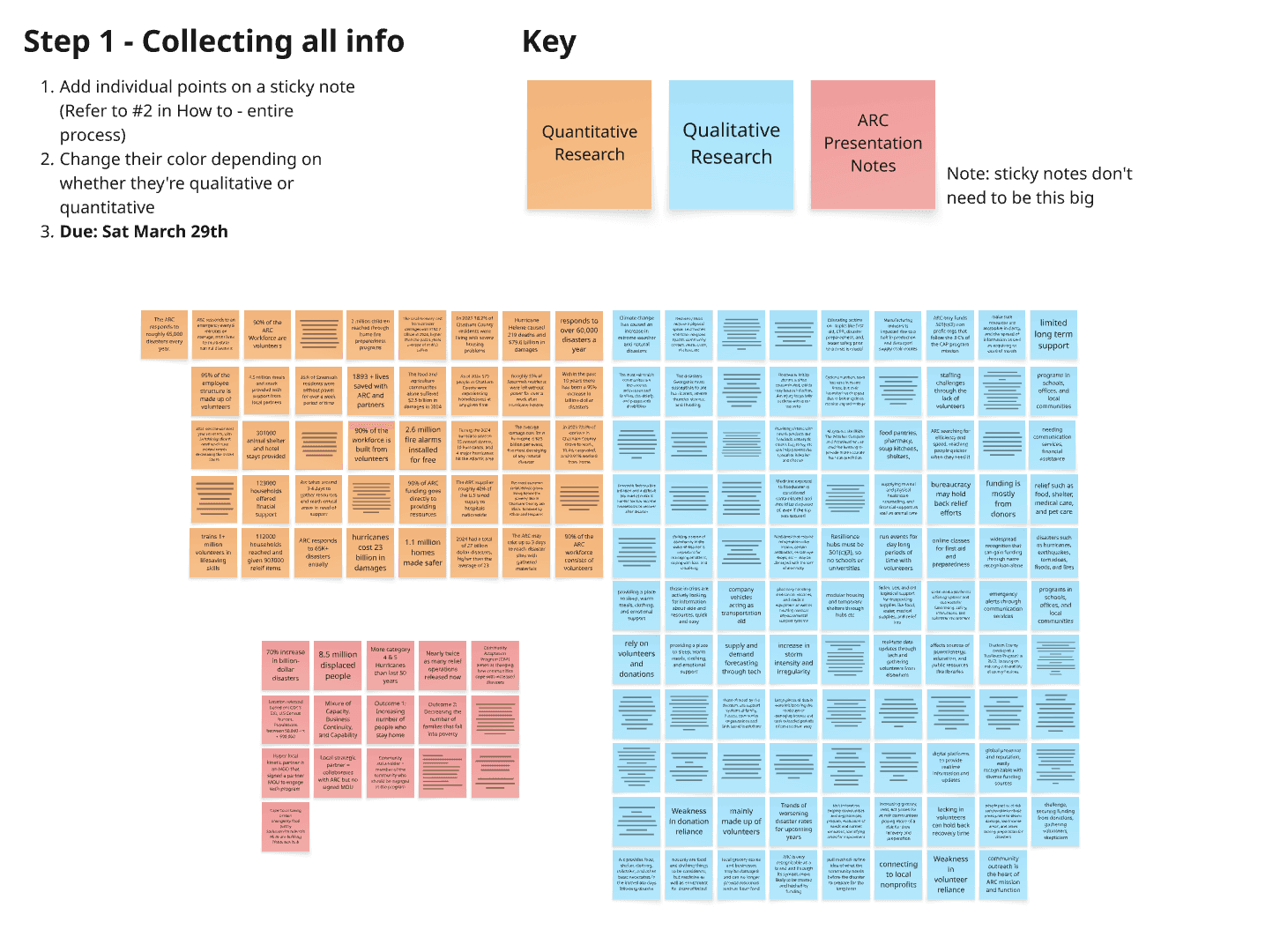 To avoid repetation, the research team compiled all of this information and organized them into qualitative, quantitative, and information given to use by the American Red Cross.
